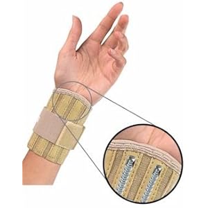 Product Description : Wrist Brace Unique contour design over wrist joint with supportive steel springs helps keep wrist in natural straight position. Adjustable wraparound strap and lightweight materials provide fit and comfort. Fits either hand One size fits most - fits wrists up to 10" (25 cm) 221 Beige - listed 222 Black - see alternate listing The Mueller model 221 wrist brace has elastic, a wrap around velcro strap for additional support, and steel "stays" inside the inner arm part of the brace. This brace does NOT cover the palm or thumb, and is fully adjustable for size. It is very good for tasks where one wants the support, but not the feel of the brace on the golf club, tennis racket, lawn mower, power tool, keyboard. It can be washed, and has a sister model in black. The 221 model is flesh colored. Recommended for stability and support without being cumbersome or disturbing to the palm/fingers/thumb. Fast shipping and product was just as promised! Thanks for the wrist brace! The product arrived faster than expected and was a great item to have. It has helped support my wrist better than the braces I've seen in stores. I had one just like it from years back but couldn't find this style in stores anymore. This brace is by far the best brace I've ever owned and I have tried so many! If you have carpal tunnel like I do, this brace will help support your wrist without hindering your ablity to use a pen or type. I love that it's adjustable and the best feature, unique to this Mueller brand is the steel spring reinforcments. I had purchased this same brace locally several years ago unfortunately it's really worn out but I could not find the same one to replace it until now. The seller on this was Red Rock Fitness and I am so impressed! I ordered (2) wrist braces on 5/8/12 and was prepared to wait patiently for delivery. When I checked my mail today I was in shock! I couldn't believe that I received my order in 4 days! I have been searching for this particular wrist brace forever! Awesome product and thank you so much for your prompt delivery!! :)